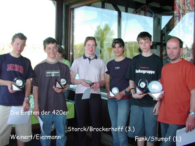 Ergebnisse der 420er: 1. Uwe Stumpf/Dustin Funk (Thüringen) 2. Sebastian Eiermann/Moritz Weinert (NRW) 3. Imke Brockerhoff/Annika Storck (NRW)