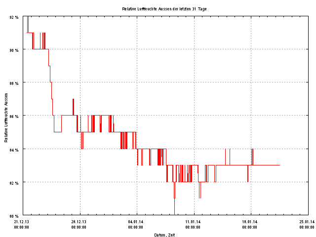 Außentemperatur und Luftfeuchte der letzten 31 Tage