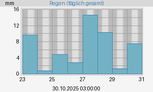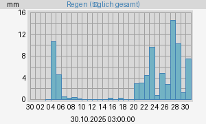 gesamt: 71,0 mm Max. Rate: 9,6 mm/h um 04.10.2025 11:16:52